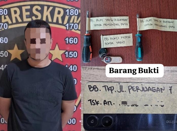 Dari hasil penyelidikan, polisi akhirnya berhasil melacak keberadaan AS. Saat ditangkap, turut diamankan barang bukti berupa satu unit HP Realme warna hitam, satu unit motor Yamaha Aerox, serta dua obeng yang digunakan dalam aksinya.